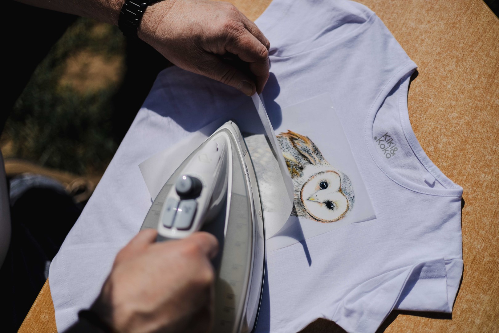 Po nažehlení perte textil naruby na max. 40 °C. Používání sušičky zkracuje životnost potisku. Žehlete pouze z rubové strany, nebo přes pečicí papír.