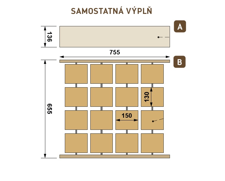 Plocha výplně: díl A (š) 755 mm × (v) 136 mm